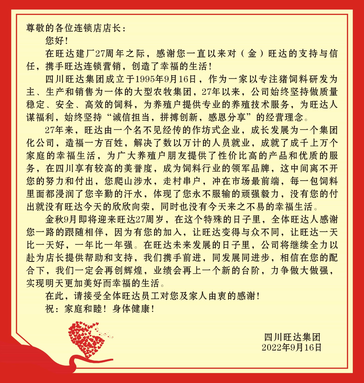致全體(金)旺達連鎖店店長的一封感謝信