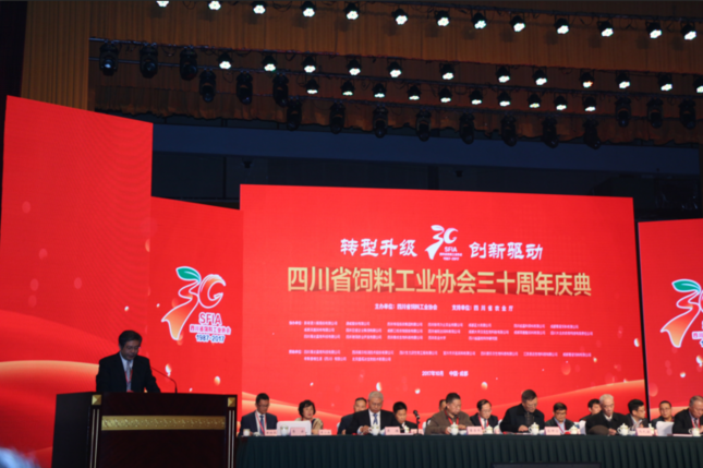 四川省飼料工業協會迎來三十周年華誕。省內各飼料單位、科研院所以及省外兄弟協會齊聚一堂,共慶生日。 四川旺達作為副會長單位應邀出席此次盛會。